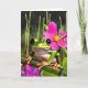 AI art depicting a cute frog or toad sitting on a branch of pink flowers with a swamp background. Funny frog and toad pun birthday card.