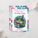 Cute birthday party invitations for a little girl's birthday. An adorable frog in a birthday hat holding a gift with a cute polka dot background in pink and teal. Add your birthday party's info in the personalise area.