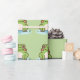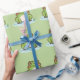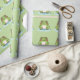 A green wrapping paper with an illustration of a cute frog on its pond! It could be used to wrap a kid's gift or for your customers if you have a shop!