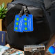 Cute frogs luggage tag. Green frogs on blue background. Design on front with your contact info on reverse. Edit to the name and information you prefer.