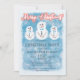 This adorable and sweet Christmas party invitation is perfect for the holiday season. It features three hand-painted snowmen on top of a glacier frosted blue background and a white snowy border with the phrase, "Merry Christmas," in glowing red typography. It fun, playful, modern, and festive.