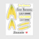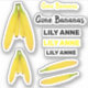 Cute Fruit Bananas With Name Stickers are the trendy cut out type kids love! This design was created from a personal photo of a bunch of bright yellow bananas. You receive a total of nine individual stickers! The page includes four banana stickers, two "gone bananas" and three name stickers in colours of yellow and black block print. You can use for kid's lunchboxes.