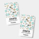 Name badge with a cute fruit pattern line drawing style. Light green and yellow colours. A fun summery design.