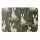 Cute Fun Bunnies On Evergreen Background Bath Mat