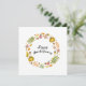 Thanksgiving greeting card with words "Happy Thanksgiving" and colourful fall leaf and pumpkin wreath. Add your own message to the back.