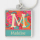 Cute Fun Pink and Teal Teen Monogram Name Initial Key Ring