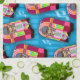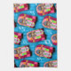 A unique and fun awesome epic retro music illustrated vinyl record neon jukebox pattern electric blue background cartoon pattern vinyl aesthetic classic vintage aesthetic oldies nostalgia gift music style favourite singer in concert illustrated cool music design deluxe kitchen towel. Get a fun jukebox pattern kitchen towel today.