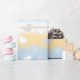 Cute heart designed gift wrap with a yellow white and blue ombre effect background with fun matching complimentary coloured heart shapes.