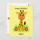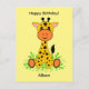 Cute funny baby giraffe for birthday postcard