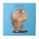 Cute funny big cheeks chipmunk cartoon ceramic tile