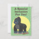 It's party time! This big gorilla will add some jungle fun to any party . Drawn in cute cartoon illustration style on a green and white polka dot background.