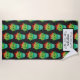 A beach towel with a repeating pattern. A cute illustration of a plump round cactus, with big kawaii eyes, smiling and wearing a red sombrero. Standing inside a flower pot. The background is black making the colours pop! Personalise with a name in between vintage-looking decorative dividers.