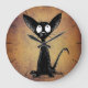 This funny little cartoon cat is on a textured vintage back ground, from an illustration by Paul Stickland and his favourite black cat drawing. Loads more funny little black cats, cat art and oriental cats on StrangeStore.