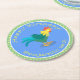 Cute funny crowing rooster cartoon illustration round paper coaster