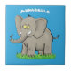 Cute funny elephant with bird on trunk cartoon ceramic tile