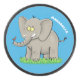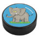 Cute funny elephant with bird on trunk cartoon hockey puck