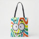 Cute funny face smiling colourful pattern trendy tote bag