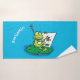 Cute funny green frog cartoon illustration bath towel set