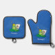Cute funny green frog cartoon illustration oven mitt & pot holder set