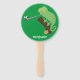 Cute funny green happy chameleon lizard cartoon hand fan