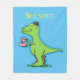 Cute funny green t rex dinosaur cartoon fleece blanket
