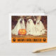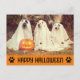 Wish everyone a happy Halloween this year with this cute, funny postcard featuring a photo of three dogs in ghost costumes! Keep this funny photo or add a photo of your own dog in costume to personalise this postcard.