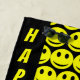 Cute Funny Happy Faces Smiling Emoji Pattern Unique Black and Yellow Beach Towel for Happy Summer Times with custom text Happy Vibes, you can change the text and add your name :-)