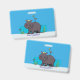 Cute funny hippopotamus with bird cartoon ID badge