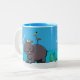 Cute funny hippopotamus with bird cartoon Two-Tone coffee mug