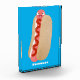 This funny hot dog is ready with ketchup for lunch! Drawn in cute cartoon style.