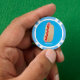 This funny hot dog is ready with ketchup for lunch! Drawn in cute cartoon style.