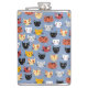 Cute Funny Kitty Cat Faces Pattern Blue Hip Flask