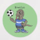 This happy Komodo dragon is playing soccer! Drawn in fun cartoon style.