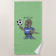 Cute funny Komodo dragon playing soccer cartoon Beach Towel