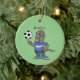 Cute funny Komodo dragon playing soccer cartoon Ceramic Ornament