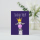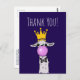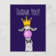 Thank you postcard a whimsical llama blowing a bubble while chewing on gum. Wearing a gold crown and a black bow tie. This cute lama is only visible from the neck up. has a cartoonishly long neck.