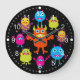 Cute Funny Monster Party Creatures in Circle Large Clock