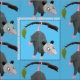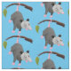 Cute funny opossum hanging from branch cartoon fabric