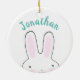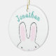 Cute funny peeking bunny cartoon personalised kids Ceramic Ornament. Christmas ornament, available in many shapes and materials.