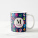 Cute Funny Pet Paw Print Colourful on Navy Blue Monogrammed Coffee Mug. Cheerful dog or cat print pattern in pretty colours, yellow, pink, blue, green, hot pink, purple. Great gift for dog or cat lovers, dog mum's and cat mum's.