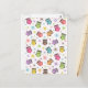 Cute funny trendy owls and flowers pattern, hot pink, bubble gum pink, light blue, bright green, soft purple, soft yellow, orange, dark and lighter brown, white colours, white background. Image print