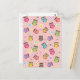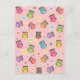 Cute funny trendy owls and flowers pattern, hot pink, bubble gum pink, light blue, bright green, soft purple, soft yellow, orange, dark and lighter brown, white colours, soft pink background. Image print