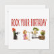 With this cute funny vegetable rock your birthday flat card you can make small little humans as well as grown ups smile all day. Spread happiness and fun with these very cute little vegetable characters. Punky gherkin on the keyboard, curly kale potato on the drums, cool little lime playing the guitar and fancy orange hair potato on the vocals make the craziest coolest fun band ever. Happy birthday in big red modern contemporary wording. Personalise it with your own message. Please contact me for more designs and other questions. Enjoy!!!
