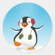 A cute winter illustration: a penguin with gloves and earflap in a good mood is walking in the snow.