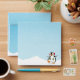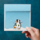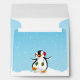 A cute winter illustration: a penguin with gloves and earflap in a good mood is walking in the snow. Matching Invitation and Gift Certificate for this envelope: