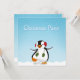A cute winter illustration: a penguin with gloves and earflap in a good mood is walking in the snow. Matching envelope for this Invitation: