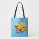 Cute funny yellow bulldozer cartoon character tote bag