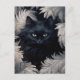 Cute Furry Black Cat Surrounded By White Feathers Postcard