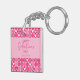 Cute Galentine’s Day Pink Heart and Flower Pattern Key Ring