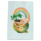 A gift bag with an adorable illustration featuring a smiling green and gold pot with a cute rainbow,